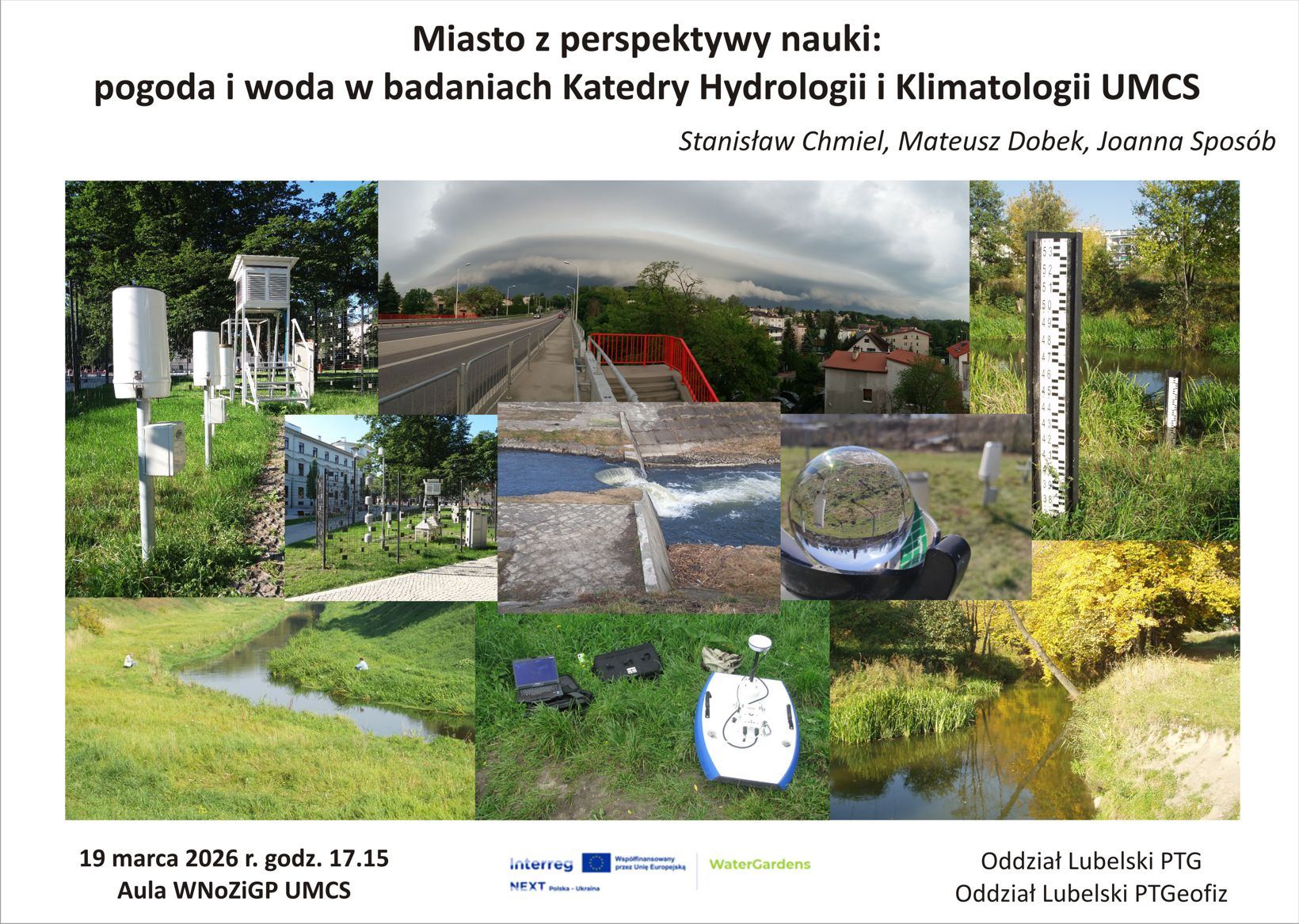 Prelekcja odbędzie się w ramach obchodów Światowego Dnia Wody (22 marca), Międzynarodowego Dnia Meteorologii (23 marca) oraz realizacji Programu INTERREG NEXT Polska – Ukraina 2021-2027, tytuł projektu „Rozwiązania oszczędzające wodę służące łagodzeniu skutków zmian klimatu” (INTERREG WATERGARDENS), finansowanego ze środków Unii Europejskiej. Projekt realizowany jest we współpracy między Uniwersytetem Narodowym w Użhorodzie i Uniwersytetem Marii Curie-Skłodowskiej w Lublinie (Ogród Botaniczny, Katedra Hydrologii i Klimatologii).